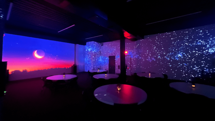 A fully immersive experience utilized 3 projectors stitched together into a seamless 360 environment designed in honor of the first anniversary of opening the Hilgermann Center.